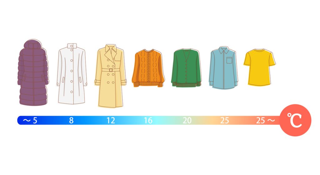 気温に応じて、薄手の長袖でいいのか、それともコートが必要なのかなどの判断はどうすればよいのでしょうか。