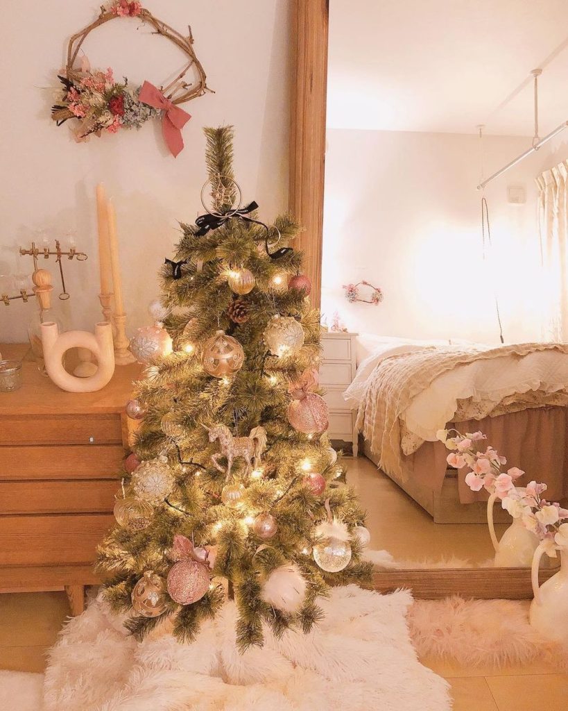 ツリーはどんなオーナメントを飾るかによって個性が出ます。ピンクとゴールドで統一したオーナメントは、かわいくてラグジュアリー。きらめくボールやユニコーンで特別感のあるツリーに彩っています。