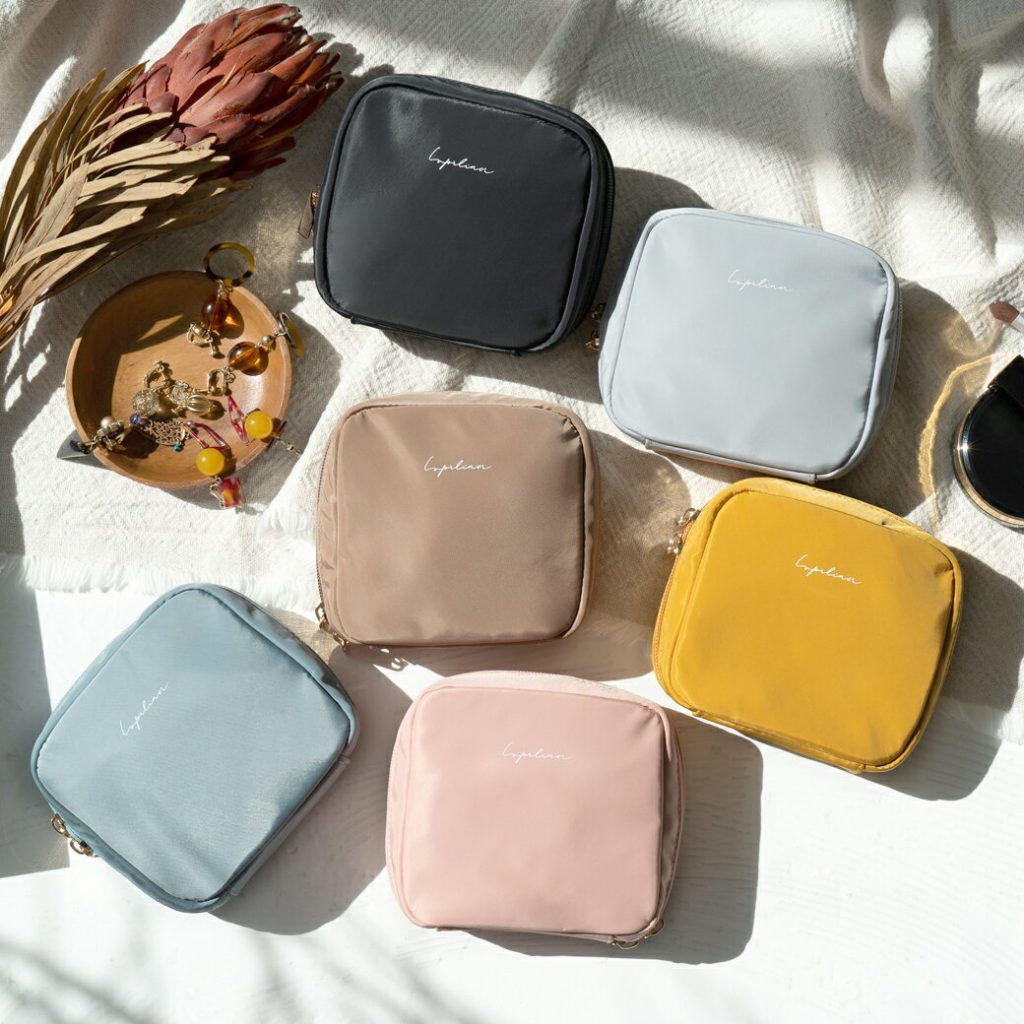 小さいながらもしっかり自立し、がバッと開いて使いやすい化粧ポーチが大人気♡仕切りが7つあるので使いやすく、内布もカラーごとに柄が違っていて、開くたびにテンションがあがります。