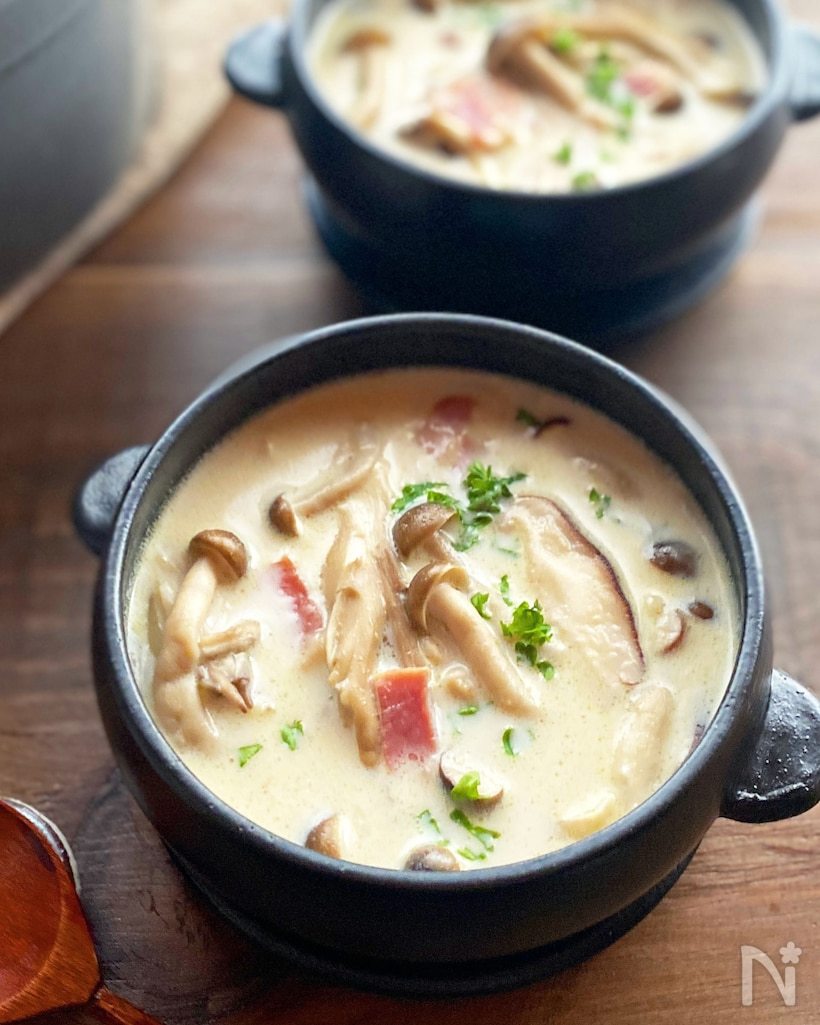 うまみたっぷり!きのことベーコンのクリームスープ | レシピサイトNadia