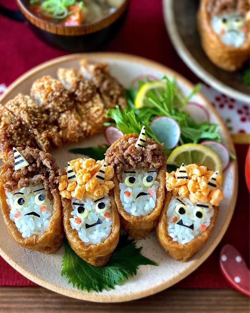 ケチャップライスにトラ柄の薄焼き玉子を巻けば、鬼を思わせるオムライス恵方巻きに。明るい色で食卓も明るくなります。オムライスは子どもが大好きな味なので、喜んで食べてもらえそうです。
