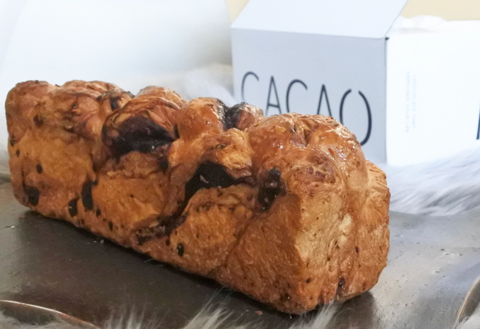 「生ガトーショコラ」「アロマ生チョコレート」「生チョコタルト」をはじめとし、季節限定商品も毎回とても魅力的です。私はその中から、毎週日曜日に販売される数量限定のチョコレートクロワッサン食パン「バブカ」を頂きました。