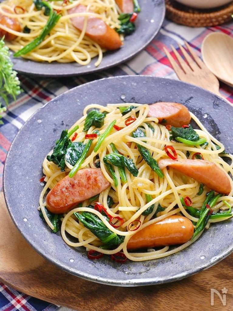 お家で本格!『ウインナーとほうれん草のペペロンチーノ』 | レシピサイトNadia