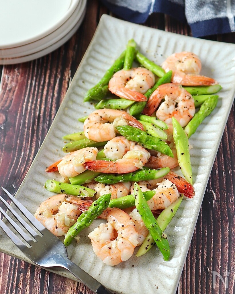 アスパラとエビの塩にんにく炒め | レシピサイトNadia