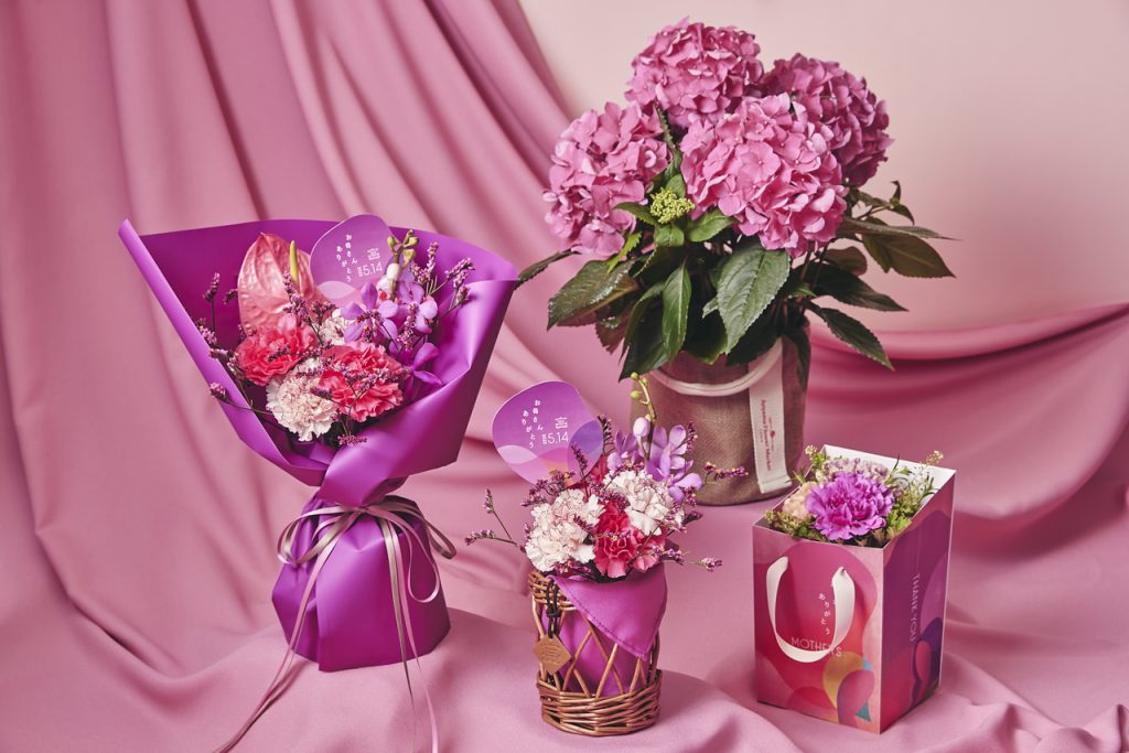 青山フラワーマーケットの今年の母の日は、3つのカラーパレットと花の組み合わせギフト。情熱のレッド、スウィートなピンク、明るいコントラストのオレンジ×ブルーの3種のカラーリングが登場します。