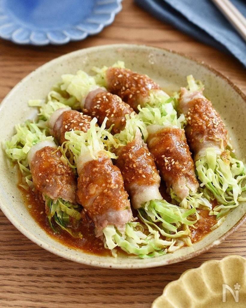 \レンジで5分/肉巻きキャベツのレンジ蒸し(韓国風うまダレ) | レシピサイトNadia