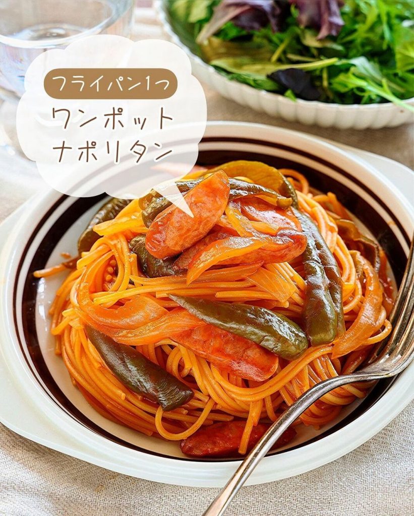 コクうまのケチャップソースがおいしいナポリタンも、別茹でしないワンポットで作れます。麺とソースを一緒に煮込むことで、うまみを逃しません。パスタはくっつかないよう、ほぐして入れるのがポイントです。