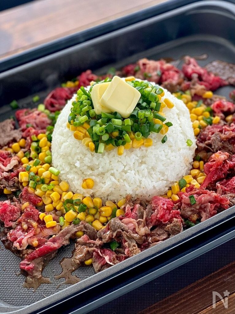 香ばしい牛焼肉とプチプチコーンの食感が楽しめるペッパーランチ風レシピ。牛の切り落とし肉を使うのでコスパが良く、食欲をそそるバターにんにく醤油の香りがたまりません。奪い合い必須のおいしさです。