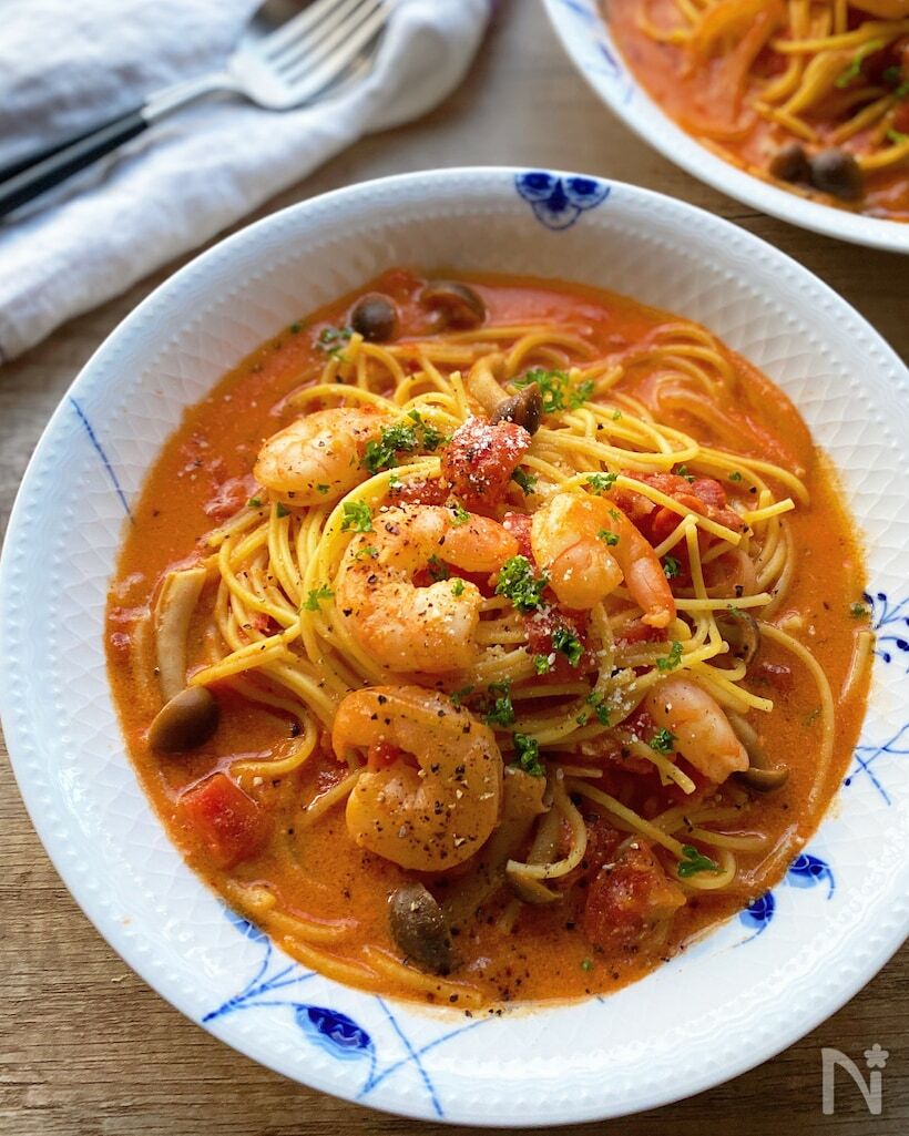 【えびのトマトクリームスープパスタ】ワンパンで手軽に! | レシピサイトNadia