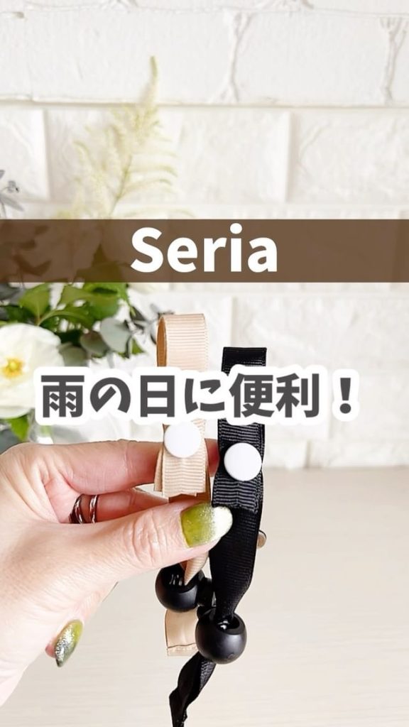 ハンドルの先端に装着すると、外出先で傘をテーブルにかけても滑り落ちなくて便利。傘の目印にもなるので、自分の傘を間違えることもなくなります。傘使用時のストレスを軽減させてくれる神アイテム!