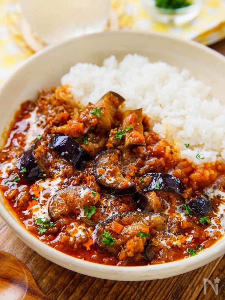 【レンジで楽々】ズボラで絶品!ゴロゴロ茄子のミートカレー | レシピサイトNadia