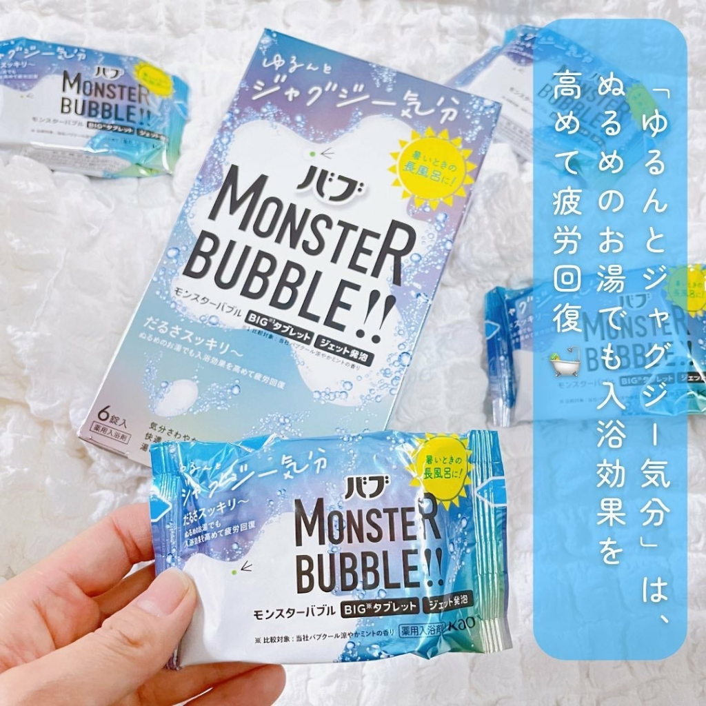 疲れた身体を癒すには、湯船に浸かるのがおすすめ。バブの「モンスターバブル」シリーズなら、ビッグサイズのタブレットで身体をほぐしてくれます。