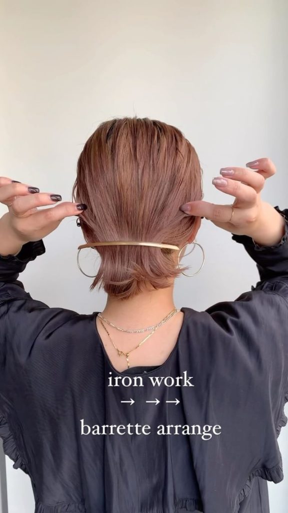 続いては、かなり短めのショートボブさんでも取り入れやすいハーフアップアレンジ。ミニクリップを使うことで、今年らしくおしゃれにワンランクアップします。