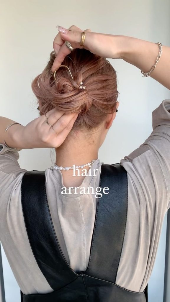 完成まで3ステップで完成するアップヘアアレンジです。大人っぽいスタイルなので様々な場面で大活躍しそうです。