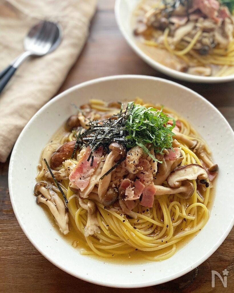 【ベーコンとしめじのバター醤油パスタ】和風な味わいが絶品! | レシピサイトNadia