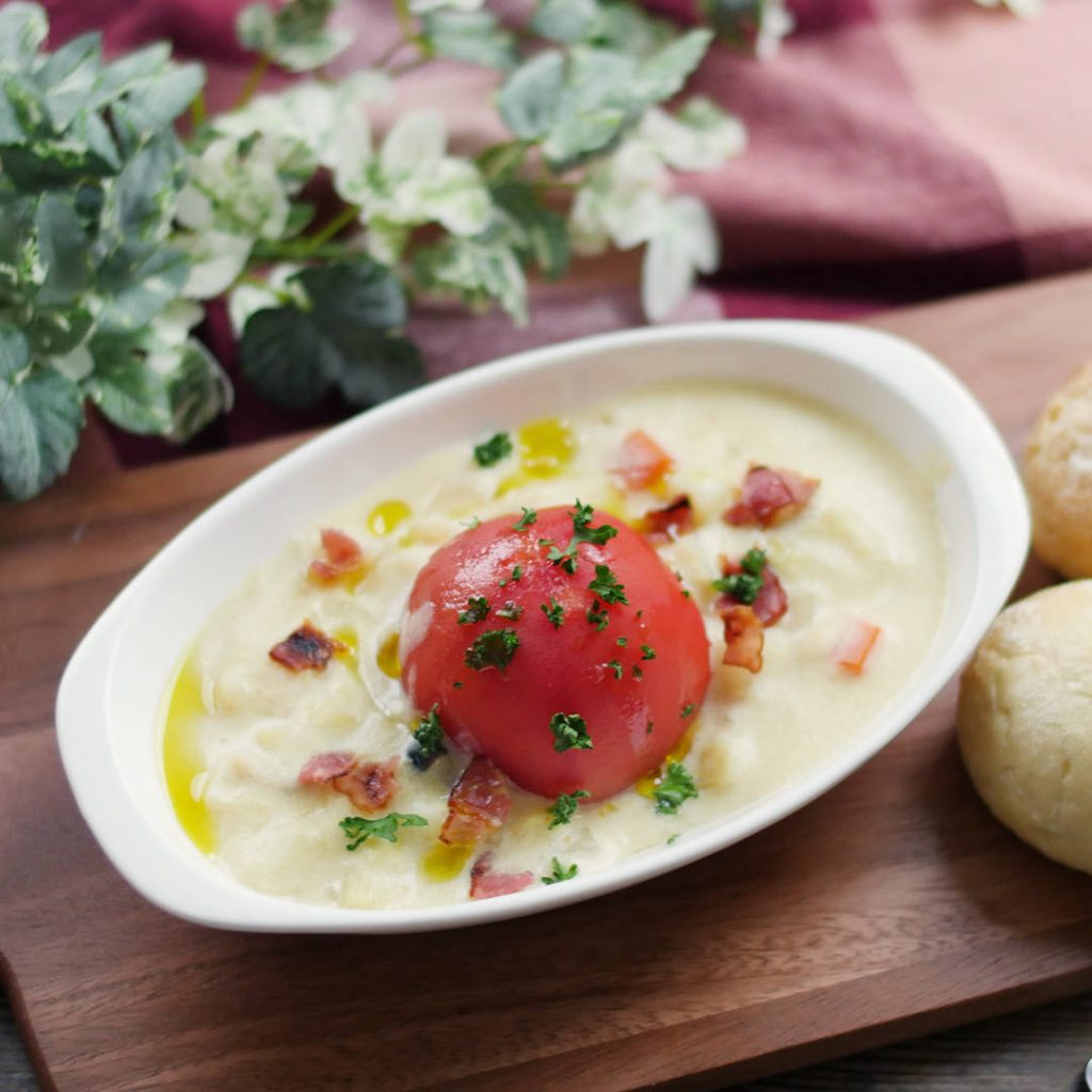 家事に仕事にと忙しい毎日。時にはパンとスープだけの日があってもいいのでは?そんなレスキューごはんを広めるべく「365日のパンとスープ」の企画が生まれました!今回は、@mr06homeさん考案の「丸ごとトマトと豆乳チャウダー 」を紹介します。