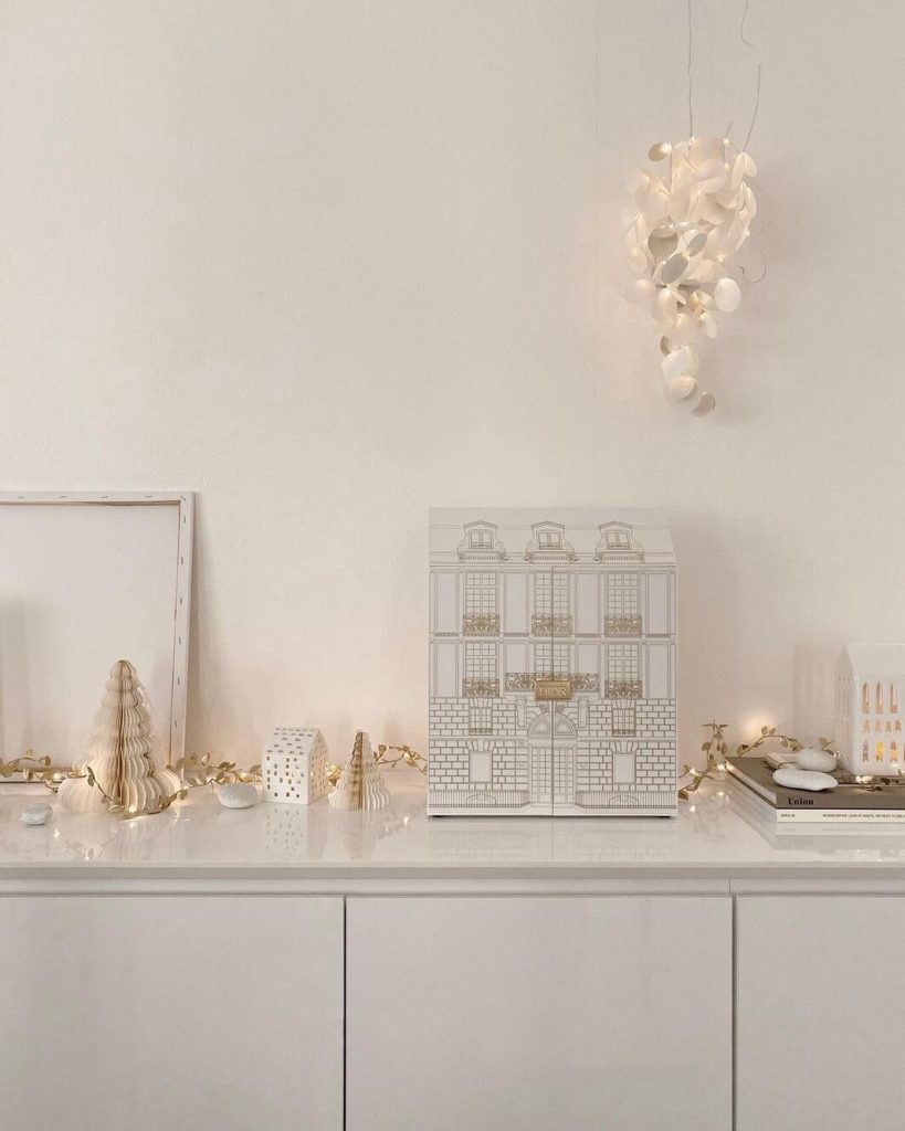 ホワイト×ゴールドの家がデザインされたアドベントカレンダーはディオール。中身はフレグランスやキャンドル、メイクアップ、スキンケアのミニコスメ。クリスマスまで毎日きれいになれそうです。中身をお菓子に替えても◎。