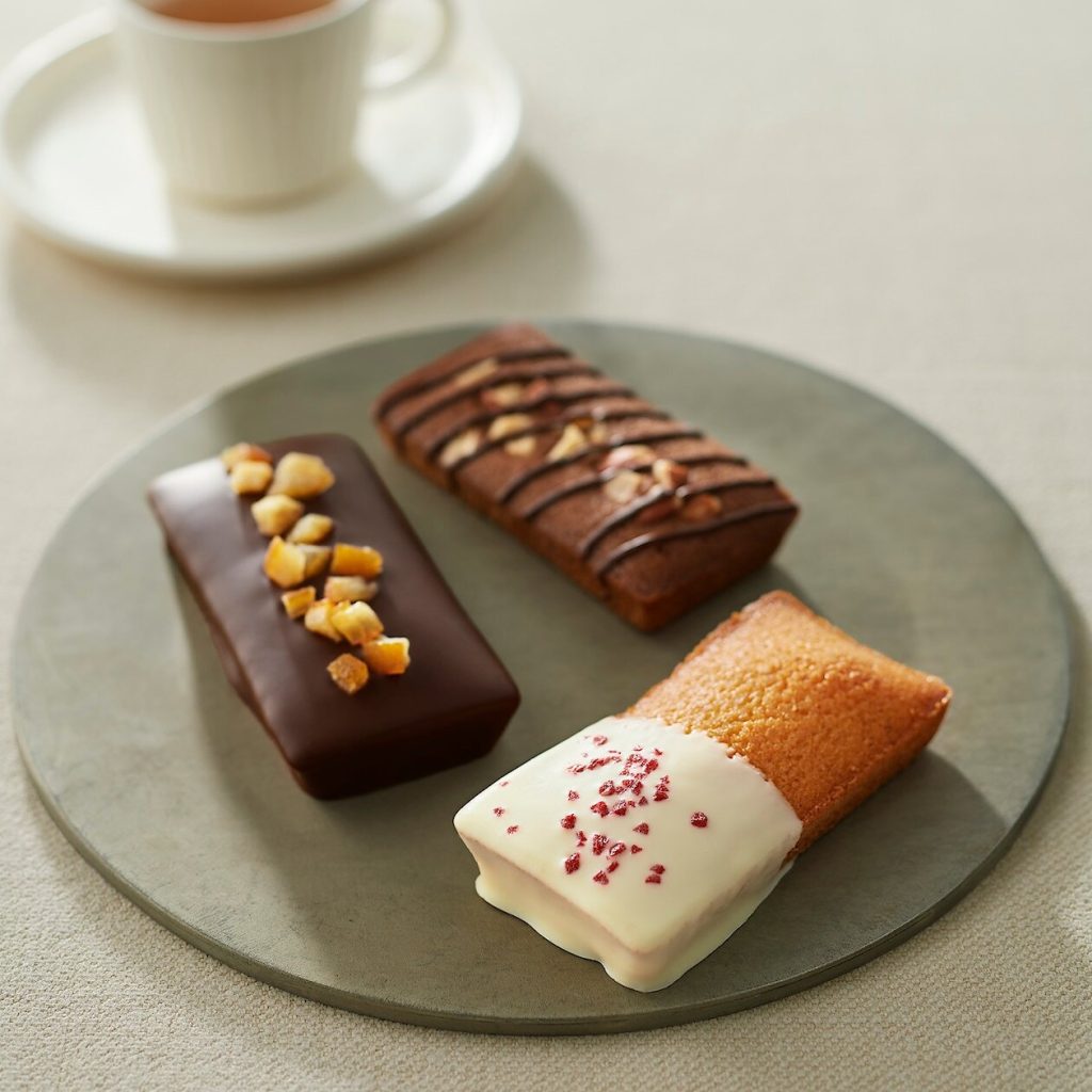 フィナンシェ、というだけでも十分おいしいのに、それぞれ違うチョコレートトッピングが楽しめるアソートです。