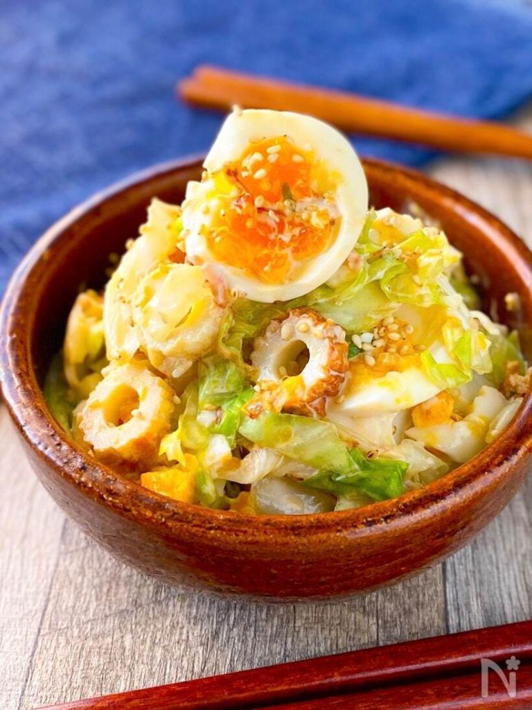 【抱えて食べたい♡】キャベツとちくわの和風たまマヨサラダ | レシピサイトNadia