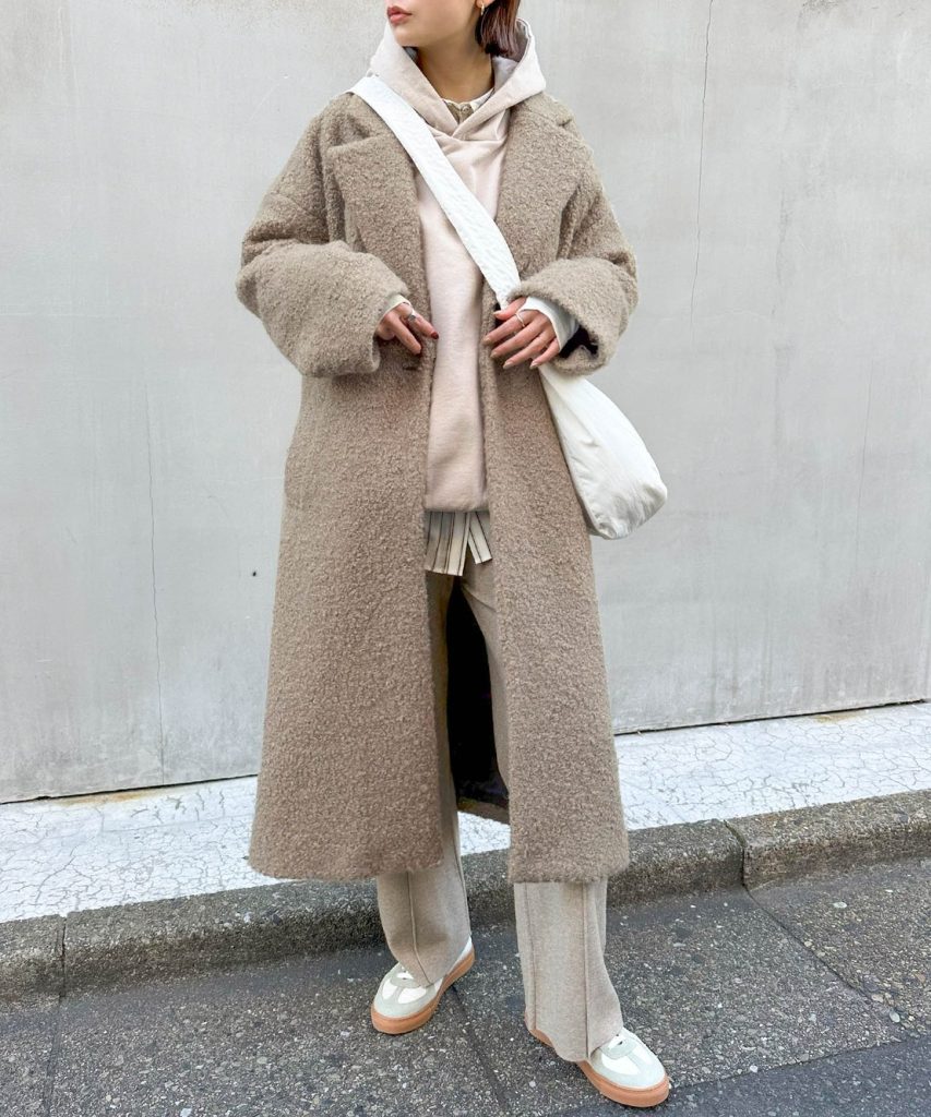 冬はアウター込みのコーデで垢抜けるのが◎。膝下のロングコートは保温性が高く一着持っていると真冬も活躍してくれます。大人っぽいチェスターもボアで抜け感あるものだと、ラフコーデに使いやすいです。