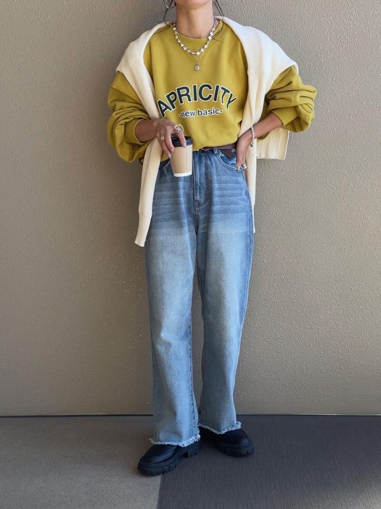 絶妙なゆるシルエットでこなれ感あふれるロゴスウェットは、1枚は持っておきたいアイテムの1つ。今なら下にTシャツなどインナーを重ねたレイヤードコーデができ、カラバリも豊富ですよ。