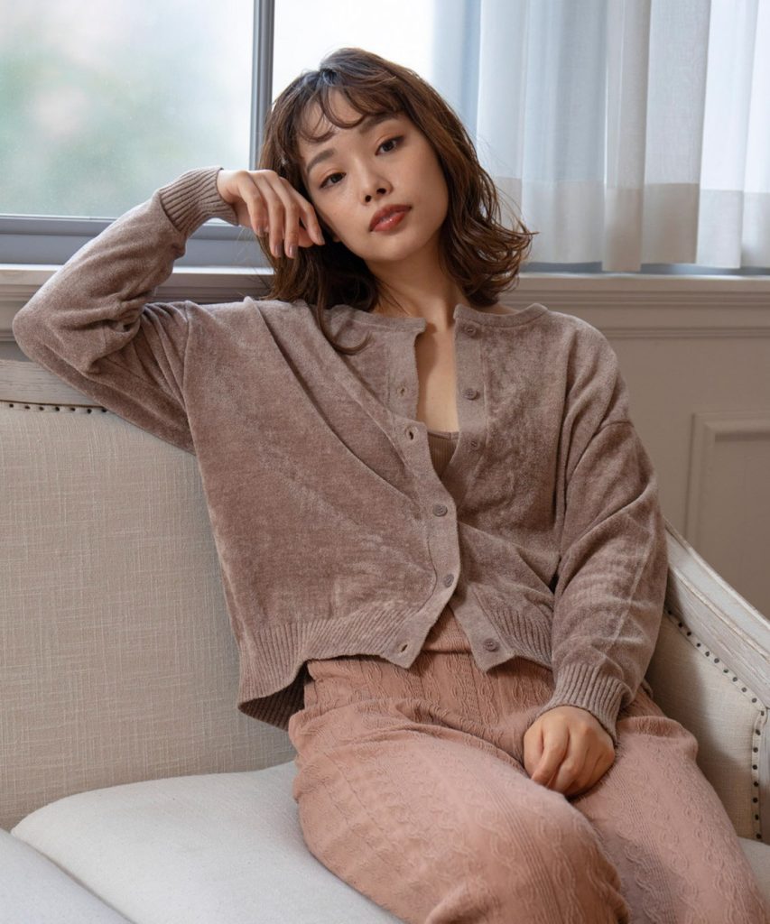 肌触りの良い素材感に癒される、柔らかなモール糸のカーディガン。
