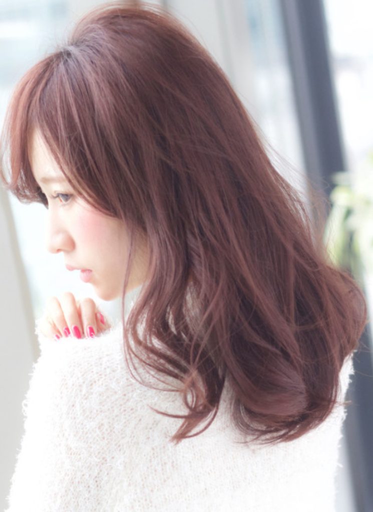 ピンクと聞くと、派手髪のイメージがありチャレンジするのに勇気がいる印象の方も多いと思います。まっピンクではなく、ピンク味のあるブラウンならトライしやすいです。大人の可愛いさを引き出す色味です。