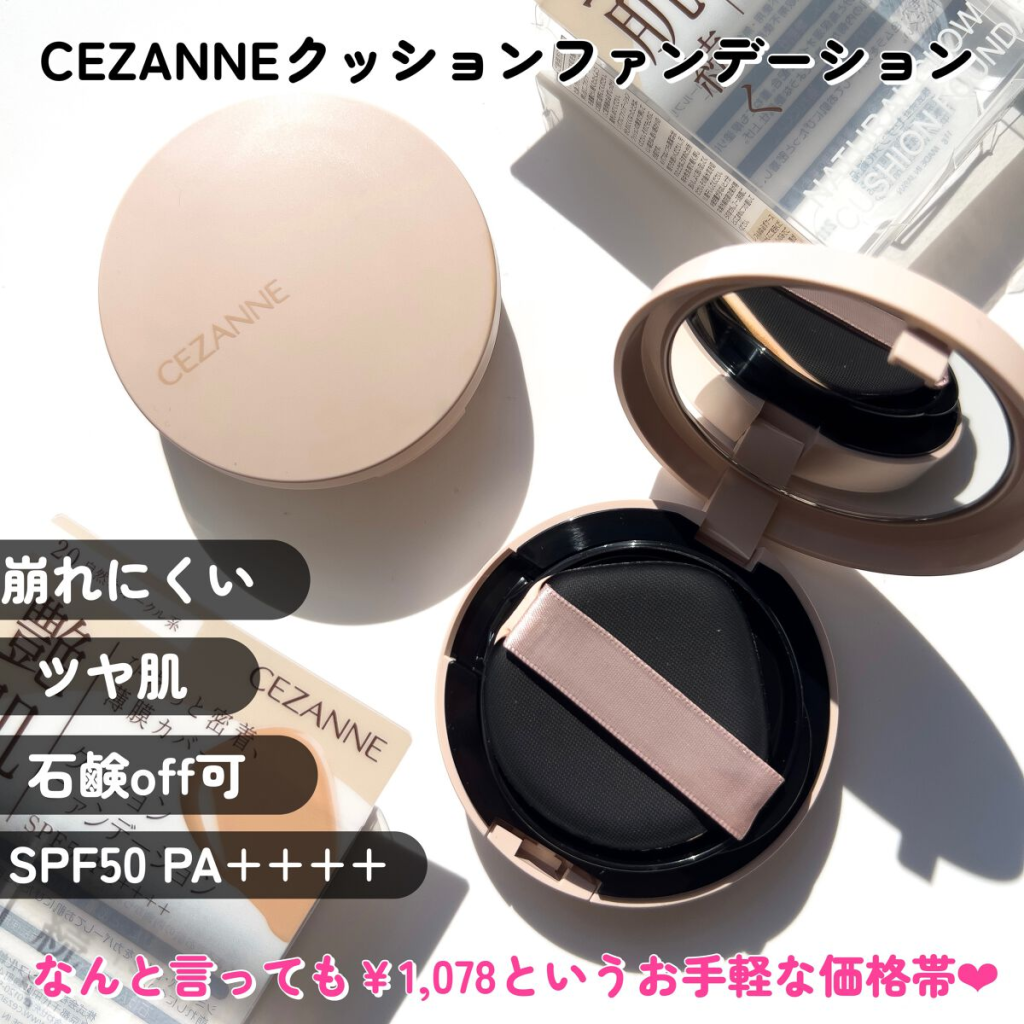 ①セザンヌ/これぞ高コスパ!ツヤ仕上がりのクッションファンデ
