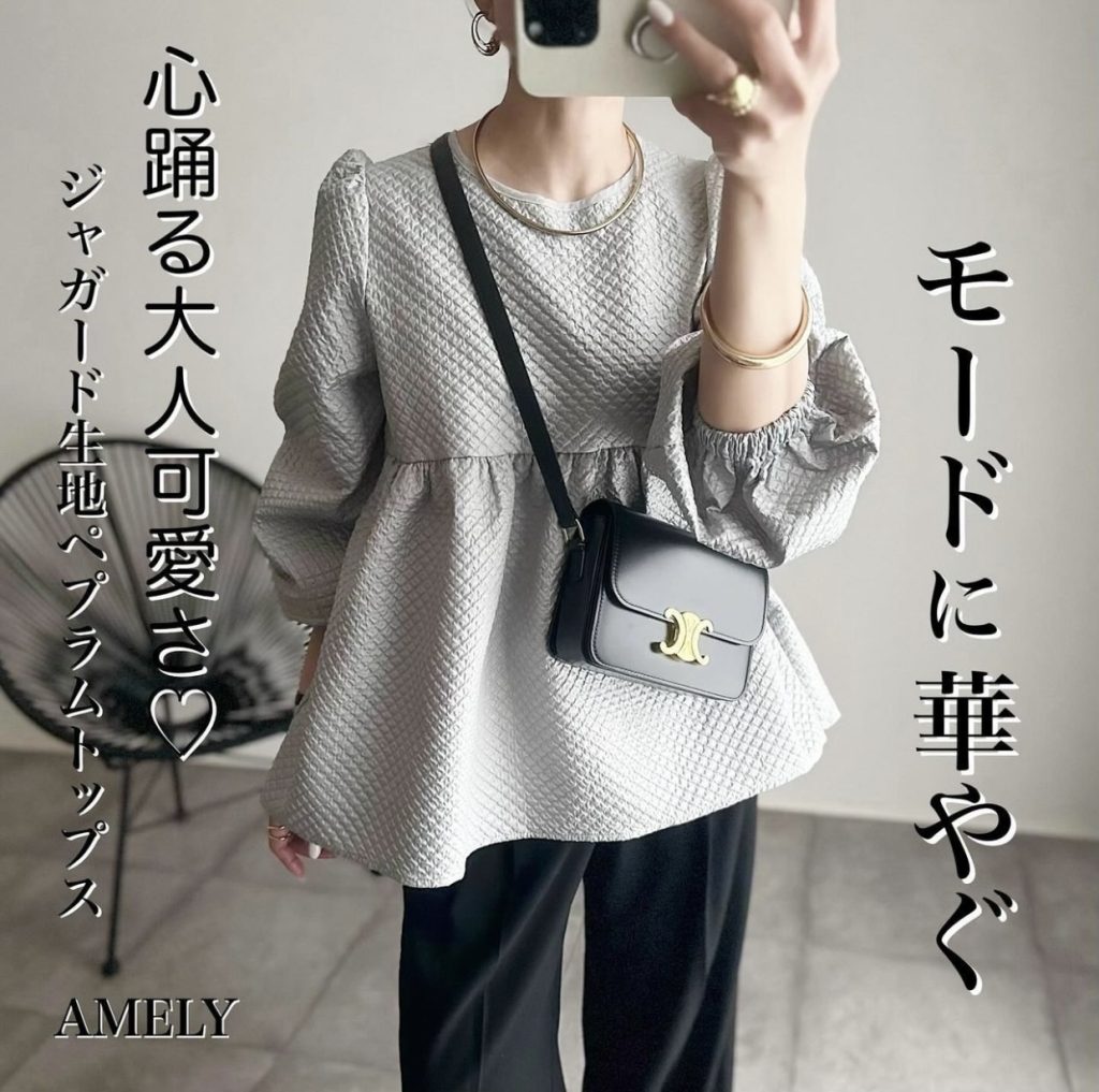 2024SSのトレンドキーワードにも入っているペプラムトップス。早速バレンタインデートで袖を通せば、旬度も気持ちも一気に上がります。