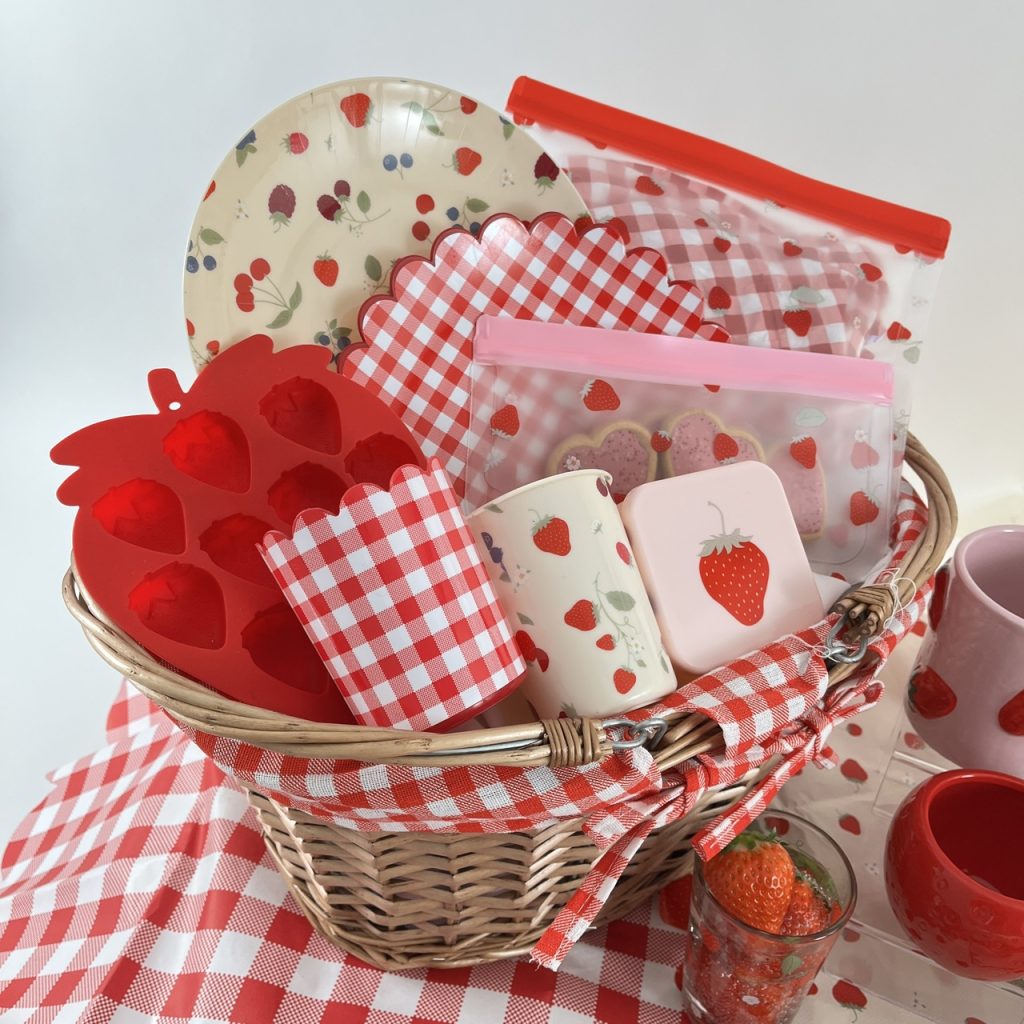 そこで全94種の中から注目アイテムを紹介します。可愛らしい「いちご」デザインアイテムは、お花見やピクニックにもおすすめです。