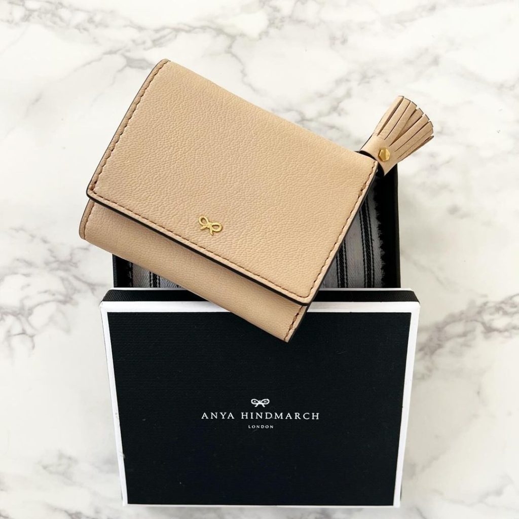 大人気のアニヤハインドマーチからは、三つ折りのウォレットをご紹介します。中を開くと、ブランドアイコンでもあるアイズデザインが♡