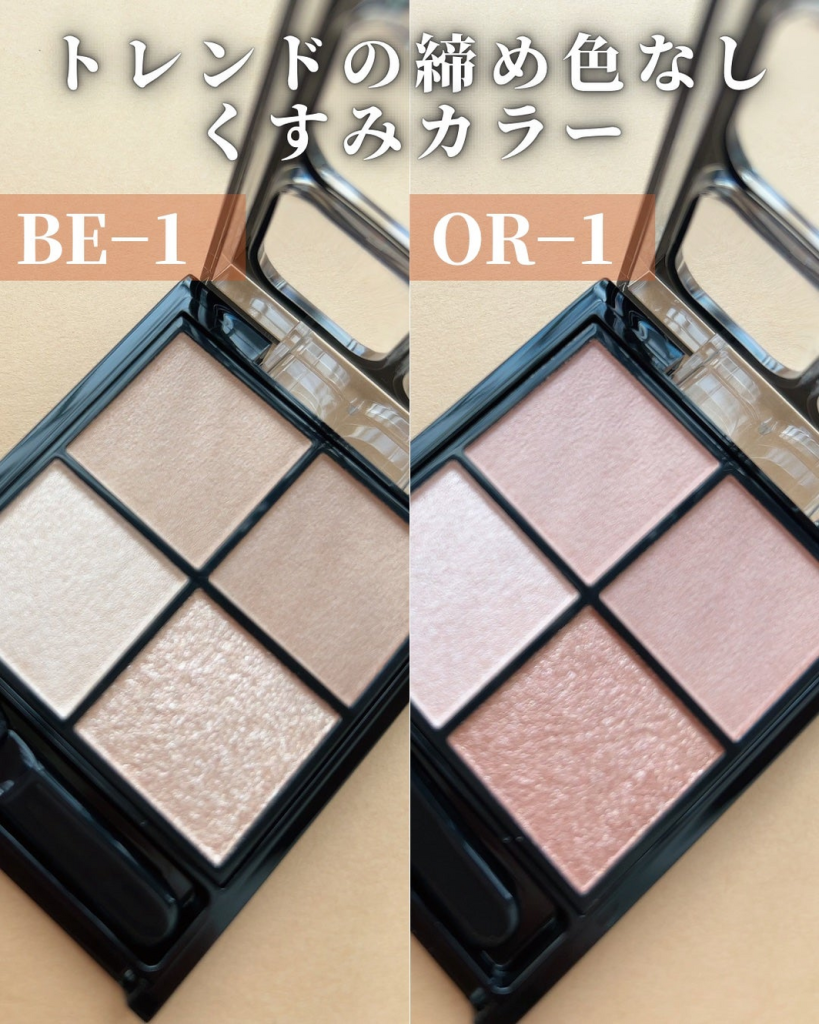 締め色なしのナチュラルカラーをそれぞれ異なる質感でまとめたアイシャドウ。シアーカラーとラメの組み合わせは立体的な目元を演出してくれるので、ナチュラルなのに華やかな印象に。