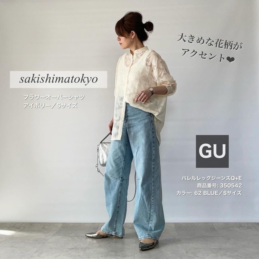 透け感のあるシャツに花柄がデザインされたシャツをふわっと羽織れば、きれいめリラクシーな印象に。きちんと着るより、ふんわり羽織ったりボタンを軽く留めればこなれ感も生まれます。