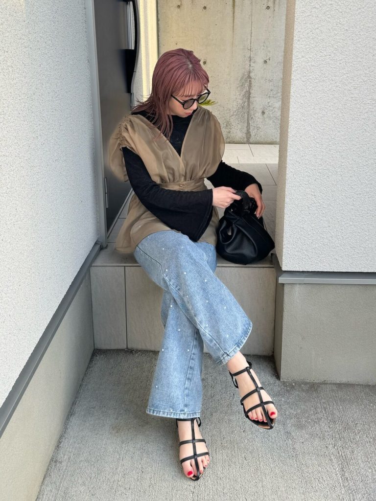 デニムはシンプルながらも存在感のあるアイテムですよね。トップスをレイヤードすることで、コーディネートに奥行きや立体感をプラスできます♡