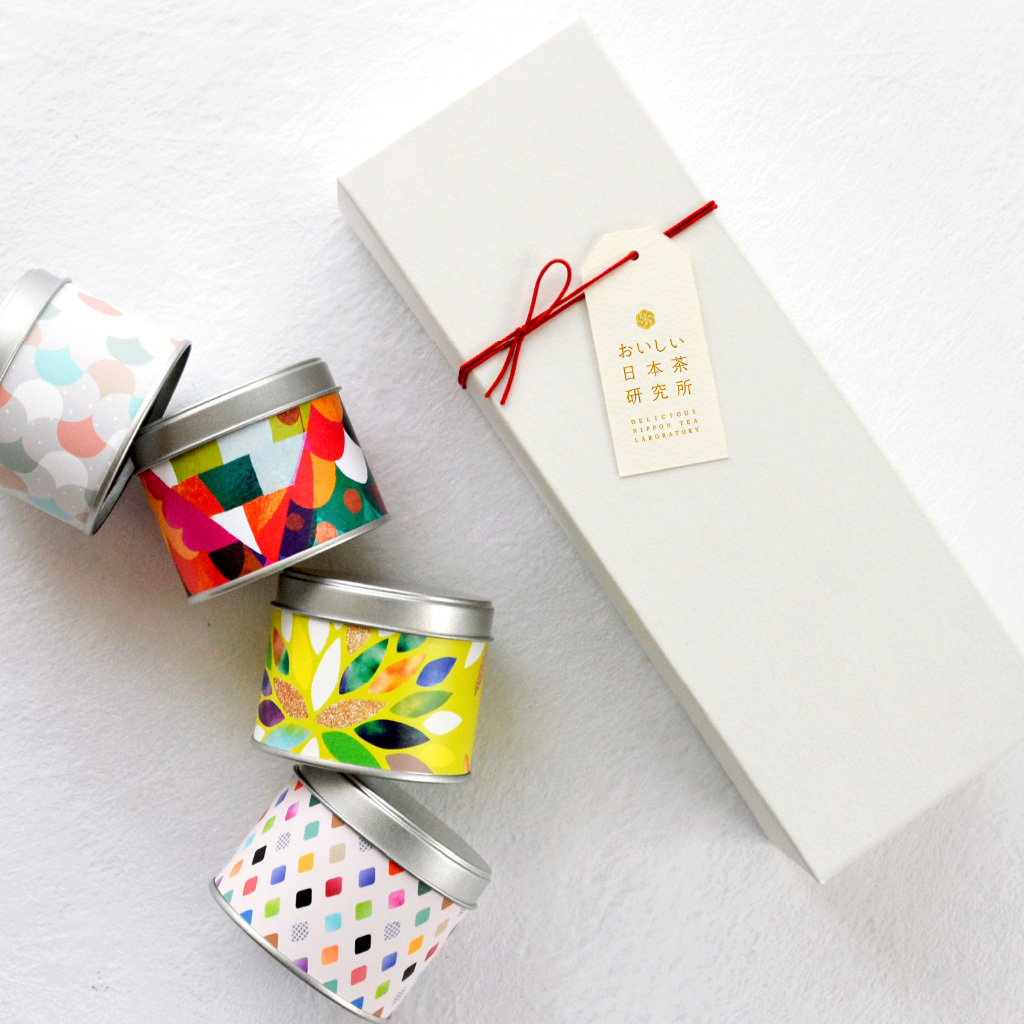 自宅で気軽に日本茶を楽しめるお茶缶のセット。ポップなデザインが愛らしく、ギフトにぴったりです。