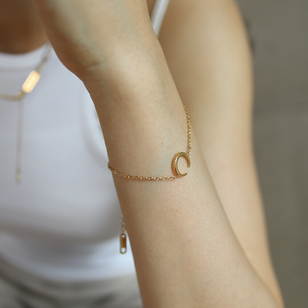 女性らしさの象徴とされる月モチーフのブレスレットです。シンプルなデザインなので、大人っぽく身につけられます。アジャスターは約5.5cmあり、手首の太さや好みにあわせて調節が可能。