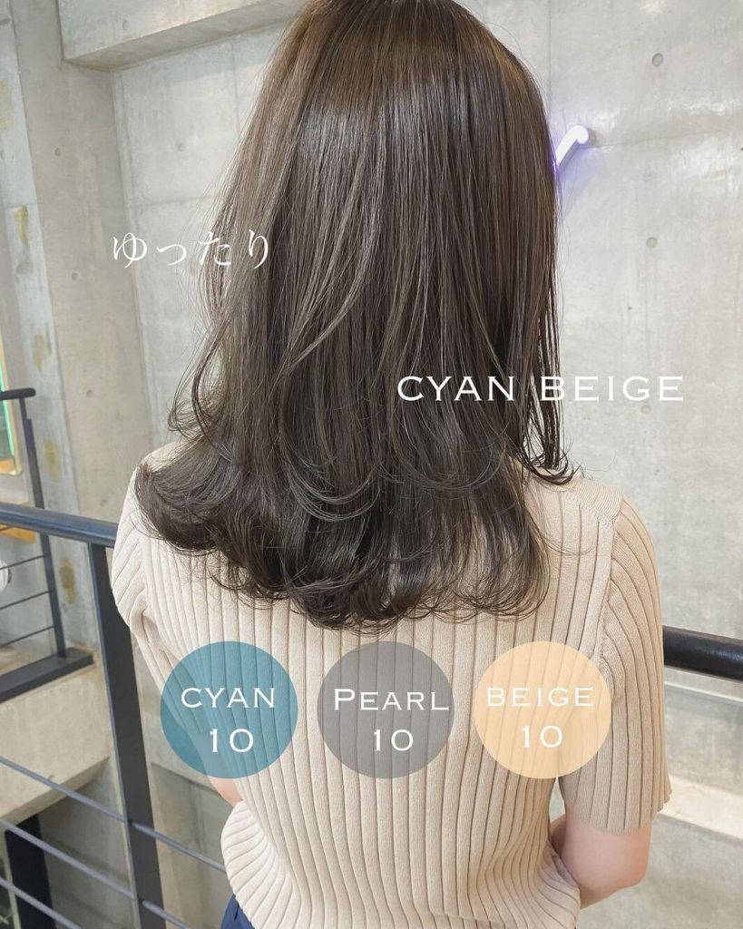 シアン×パール×ベージュの3色をMIXした“シアンベージュ”。シアン(ブルー)を加えることで、透明感たっぷりな髪色に仕上がります。