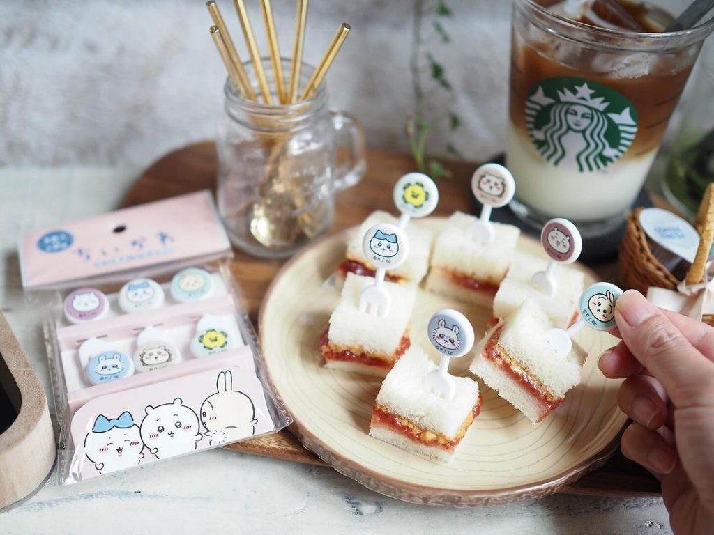おかずやサンドウィッチにさして使える、ちいかわのキャラクターが描かれたピックもあります。ピックをさすだけで食卓が楽しい雰囲気になりますね。お弁当で使うのもありです。遠足やピクニックの食事がもっと楽しくなりそう!