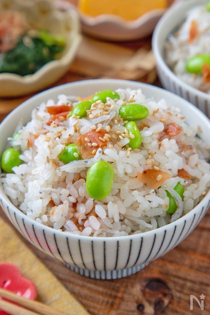 作り方は簡単!米に白だしと水、ちりめんじゃこを入れて炊いたら、枝豆と梅干しを混ぜるだけ。爽やかでご飯が進みます。