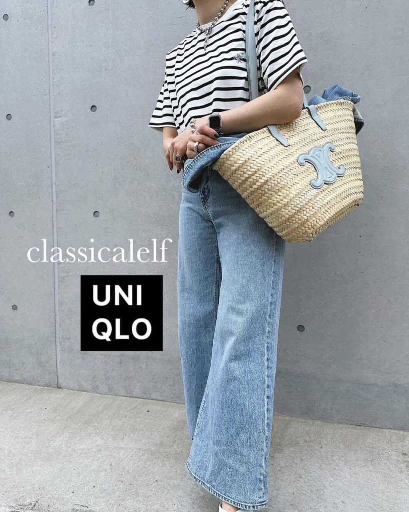 同じブルーのカットソーに、明るいブルー×コクーンシルエットのジーンズを合わせると、また表情が変わりますね。夏らしく明るい印象のカジュアルコーデに仕上がっています。