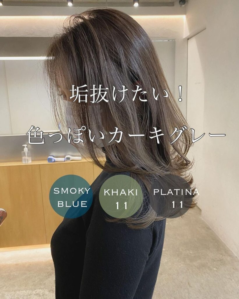 垢抜けたい方に人気なのが、グレーを混ぜたカーキグレー。色褪せたようなフェードがかったグレーがおしゃれで、色っぽさも演出してくれます。ほんの少しブルーを足して、くすみ感を出すのもおすすめです。