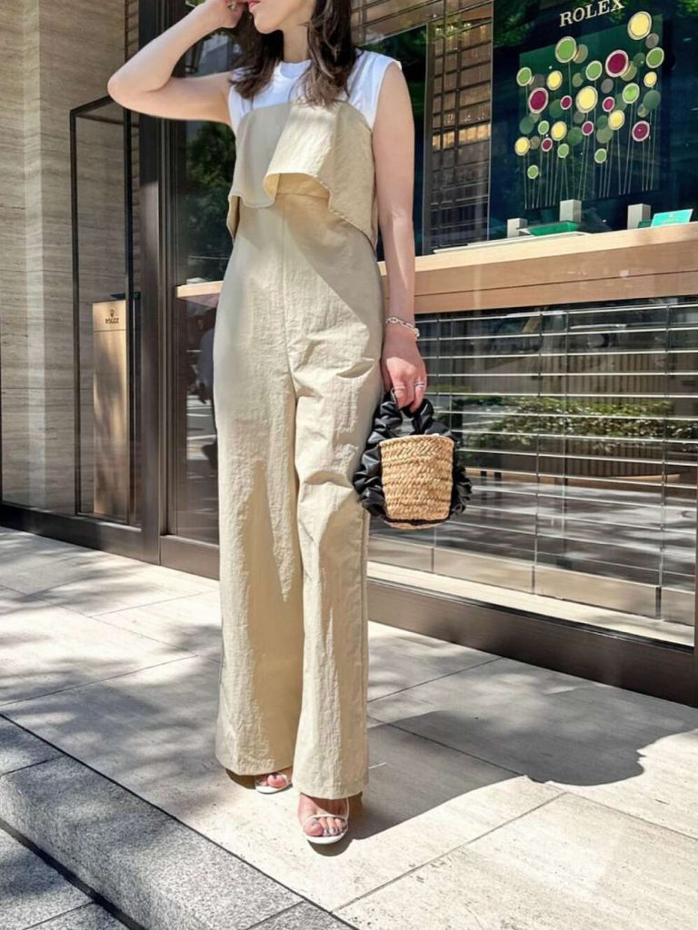 夏に向かってジワジワ盛り上がってきているサロペットコーデ。カジュアルよりきれいめに着たいなら、素材重視の選び方がベター。