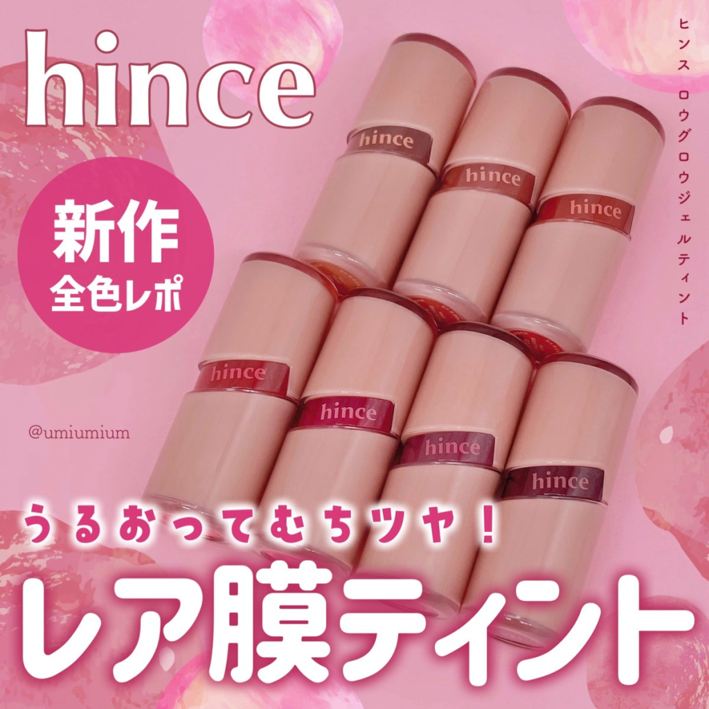 2024年5月に発売されたhinceの新作は、太陽の光によって果実や花が艶めく瞬間からインスピレーションを受けて誕生。重ねるほどツヤと立体感が増し、時間が経っても美しい発色が続きます。
