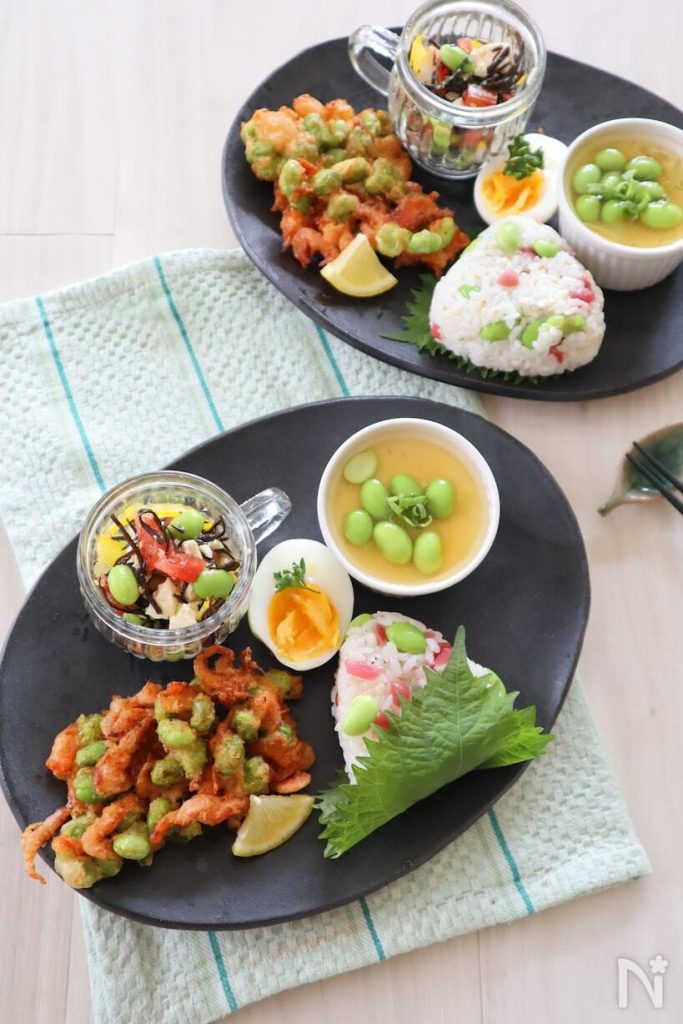 枝豆のザクザクした食感が楽しめる、夏の和風丼。材料を混ぜて盛り付けるだけの手軽さが嬉しい!