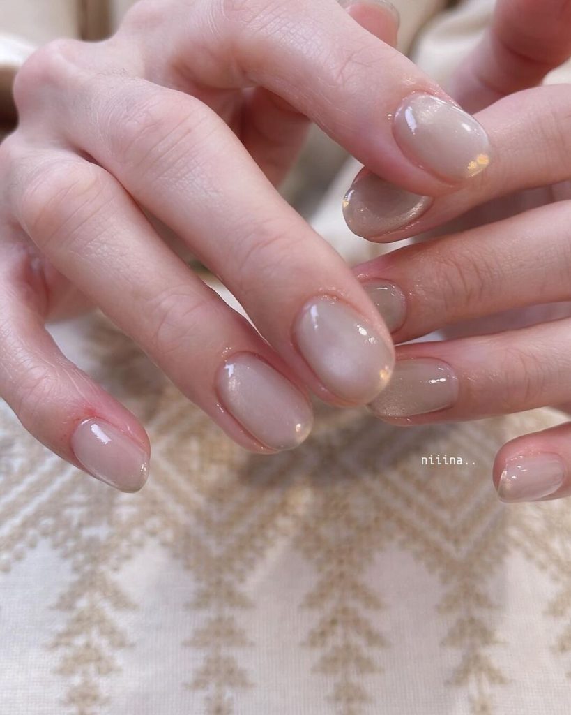 こちらもシーンを選ばず、オフィス・プライベートと万能カラーのヌーディーネイル。今年はマグネットでうるうる感あるヌーディーネイルにすると、トレンド感もプラスできます。艶があるとキレイ度もUP。