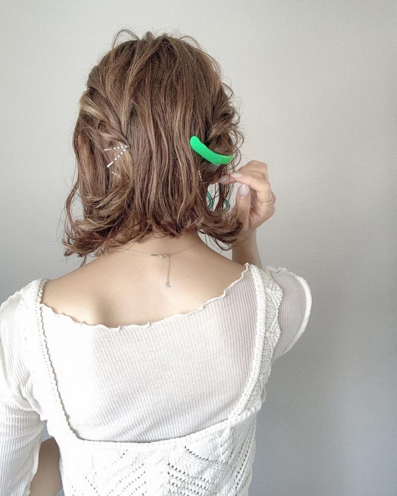 短い髪だとお団子のボリュームが出ないのですが、2個作ることで大きく仕上がります。ヘアコームを挿すとしっかりとまとまり、アクセントになって素敵ですよ。ぜひ参考にしてください。