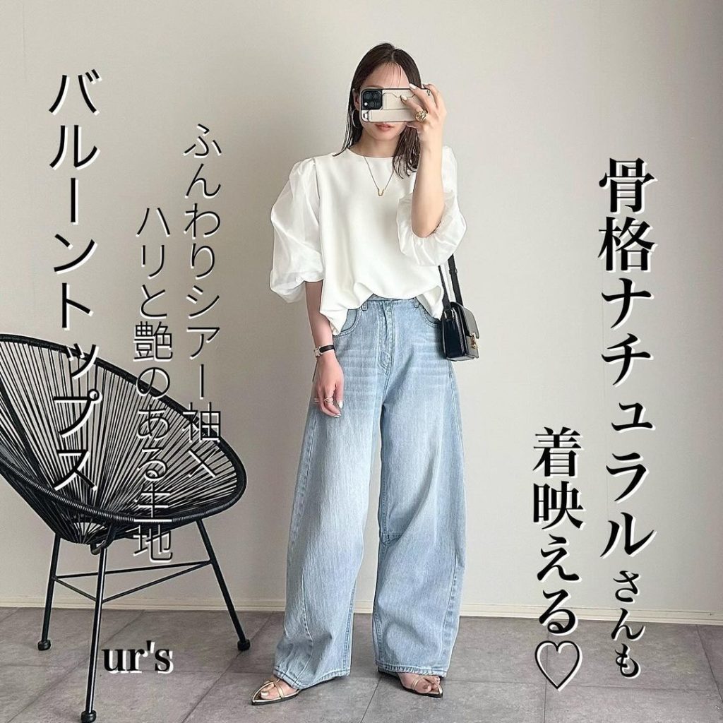 オケージョンにも着回せそうなきれいめボリュームスリーブのトップスも、デニムに変えるだけで上級者コーデにチェンジ。ラフさも生まれるため、きれいめだけではない着回し方法の一つとして覚えておきたいですね。