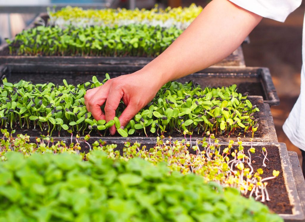 北欧風オープンサンド「スモーブロー」の付け合わせは、ナッツのような風味が特徴のひまわりの芽