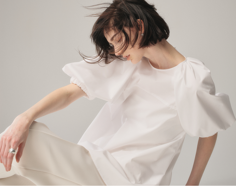 女性らしいパフスリーブが目をひく、サークルスリーブAラインブラウス。ヒップ周りをカバーするチュニック丈で、ボトムス問わずスタイルアップが期待できます。