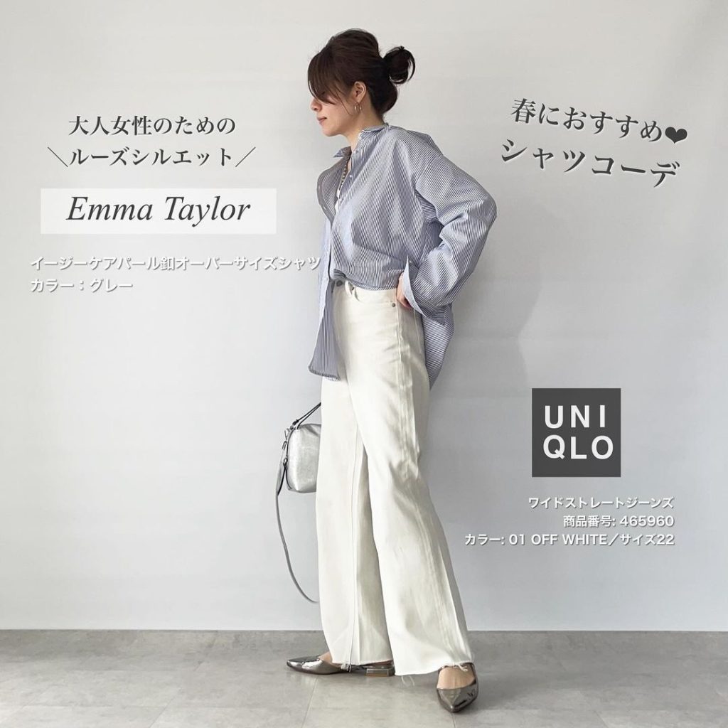 爽やかさ満点なホワイトのデニムは、きれいめコーデが得意。シャツを合わせればオフィスカジュアルとしても着回せます。